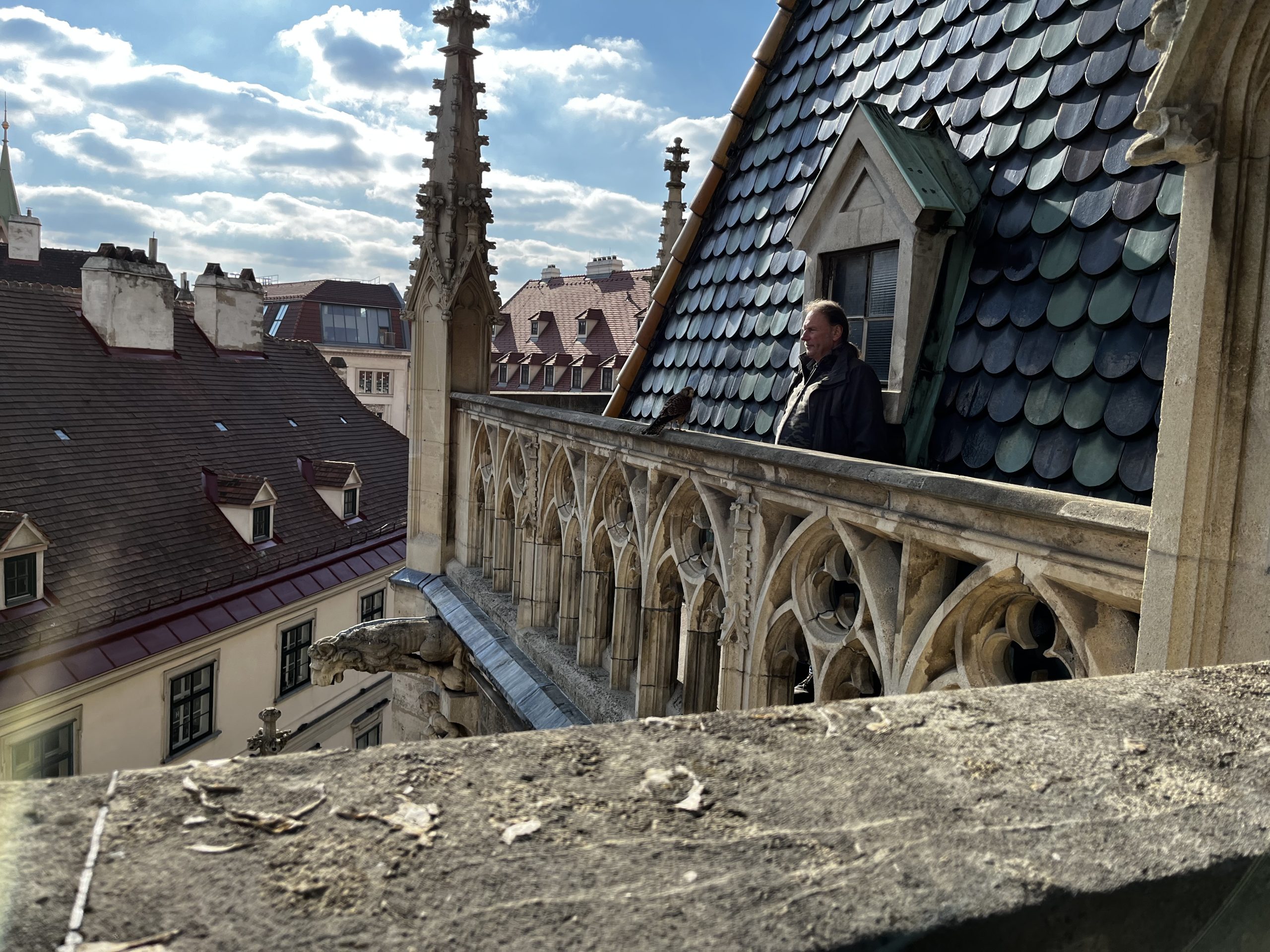 Außerdem bevölkert eine bunte Schar von Wildtieren das Gotteshaus. Auf dem Turm nisten Falken. Gregor de Lijzer und Peter Stich betreuen am Dach Bienenvölker. Die legendäre Katze Mauzidung aus der Trafik am Stephansplatz war in den Siebziger- und Achtzigerjahren eine der eifrigsten Kirchgängerinnen.